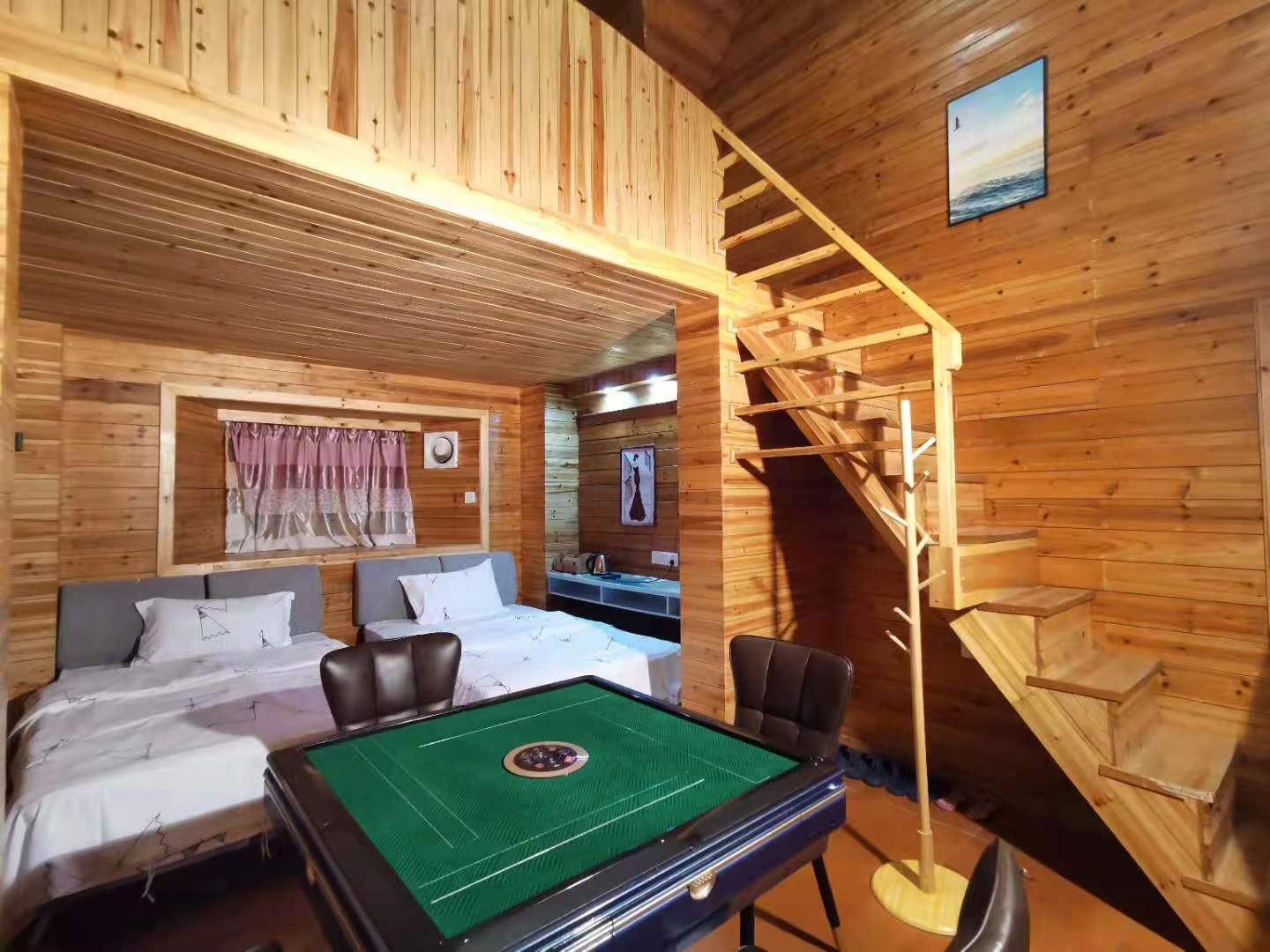 下川岛木屋别墅民宿设施齐全。位于下川岛景区海滩边,整套内含4房7床,包含2间大床房1.8米床,1间双床房1.2米x2,1间三床房1.2米X3,还具有KTV+烧烤炉+自动麻将+厨具,满足你各种需求!
